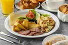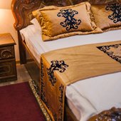 В ресторане «ROYAL» на территории отеля подают блюда кавказской и европейской кухни и каждое утро сервируют завтрак по системе «Шведский стол».