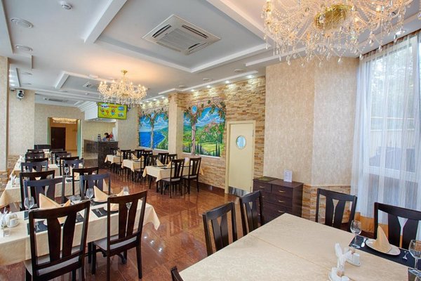 В уютном ресторане подаются блюда русской, европейской и кавказской кухни.