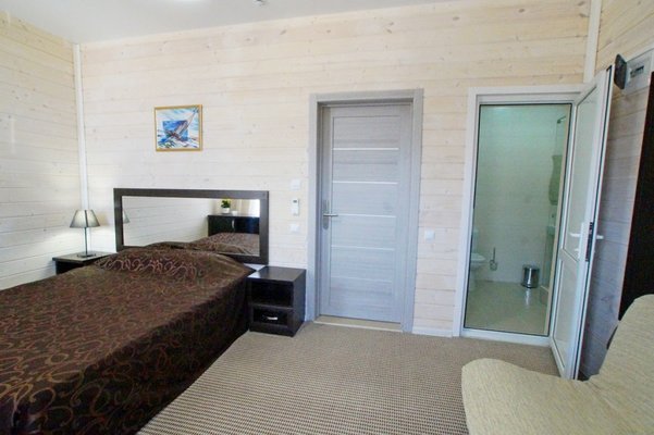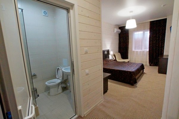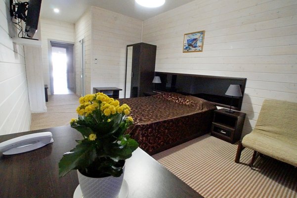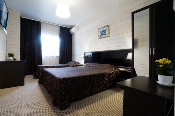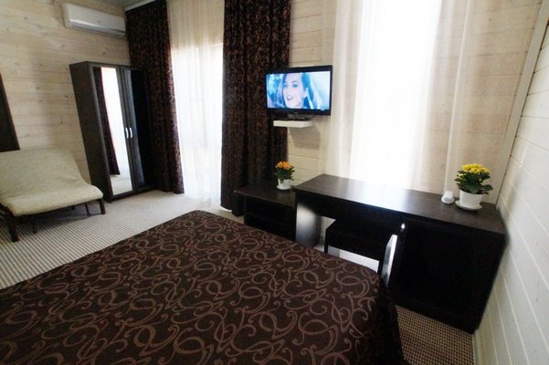 Самолетом до аэропорта г. Анапа, далее на маршрутном такси №113 до остановки "Аквапарк", далее пройти пешком 840 м до отеля.
