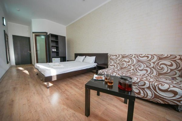 На территории отеля имеются два бассейна с подогреваемой пресной водой. Детский бассейн глубиной 70см, взрослый бассейн глубиной 180см. Вода в бассейнах прогревается до 28 градусов. Вокруг бассейна расположены шезлонги, теневые навесы от солнца.