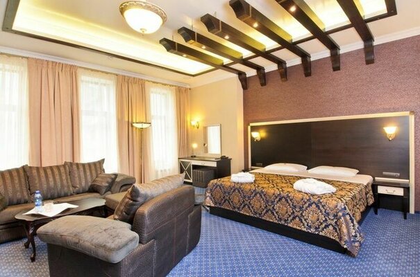 Трехэтажное здание отеля, стилизованное под крепость, расположено рядом с уютным сквером на улице 1 Мая. Комфортабельные номера, оформленные в классическом стиле, оборудованы всем необходимым: просторной ванной комнатой, бытовой техникой, сплит-системами, а некоторые — балконами.