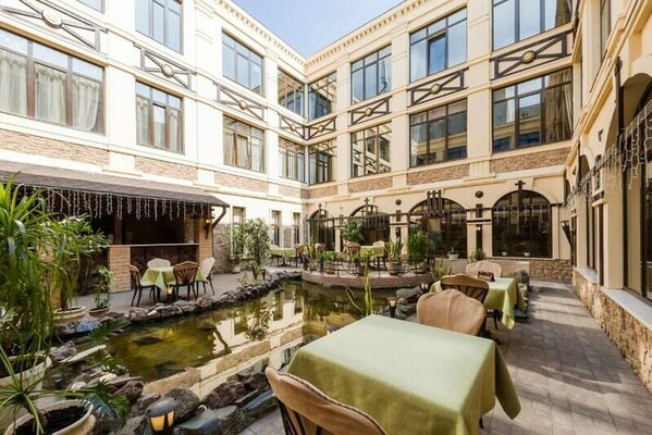 К услугам гостей — ресторан с открытой террасой, банный комплекс (хаммам, сауна, джакузи, массажный кабинет, крытый бассейн) и тренажерный зал. На территории отеля работает охраняемая парковка, предоставляется бесплатный Wi-Fi.