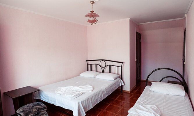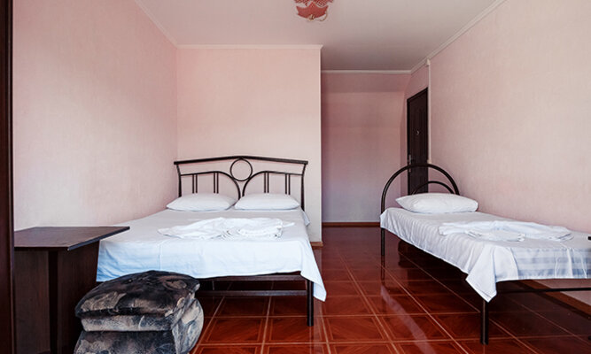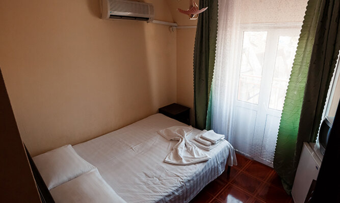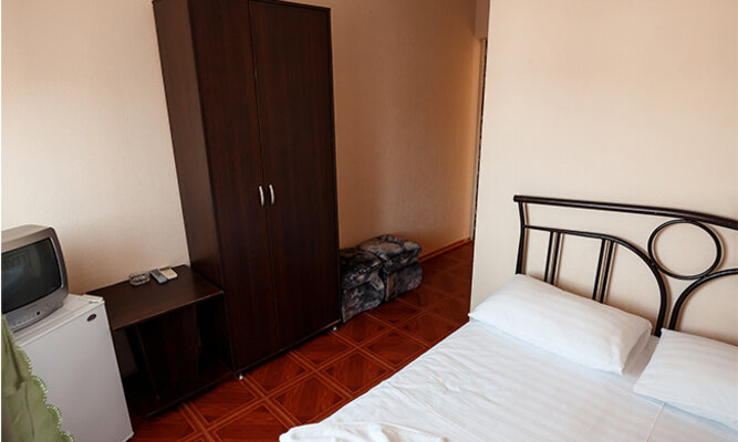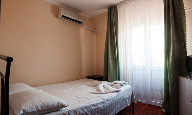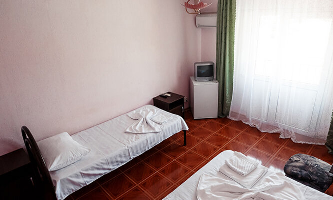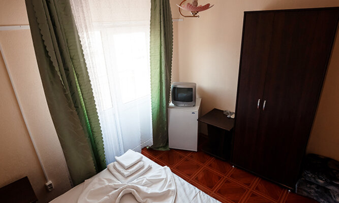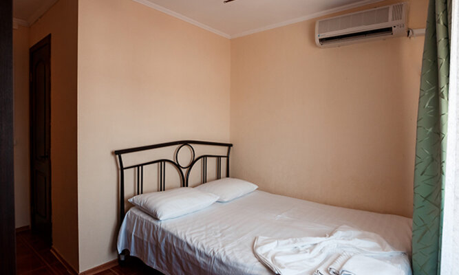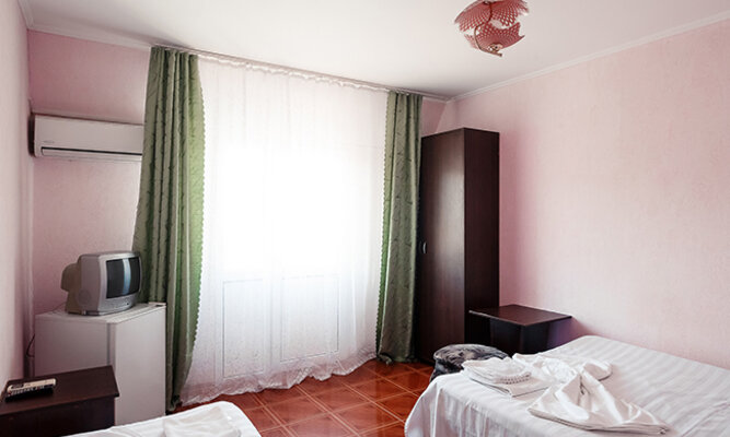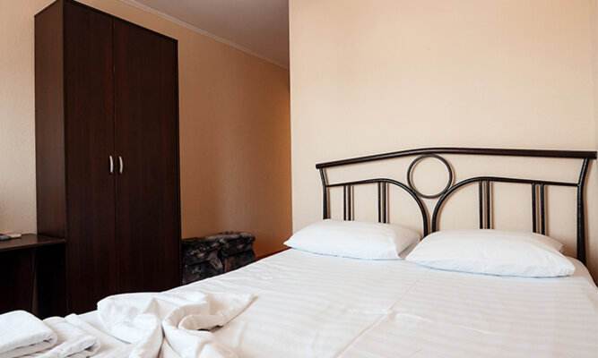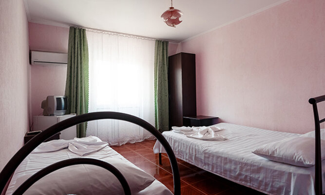 Трехэтажный корпус отеля рассчитан на размещение до 120 человек. К услугам гостей номера категории Стандарт (на 2, 3 или 4 человека) и просторные двухкомнатные номера Люкс с мини-кухней. Все номера оборудованы отдельным душем, холодильником и телевизором.