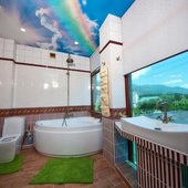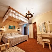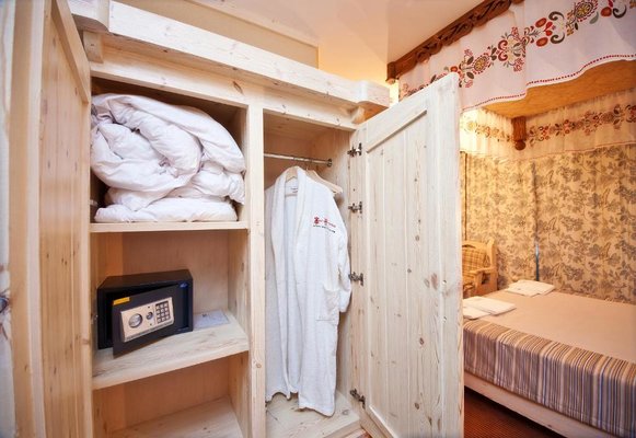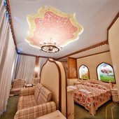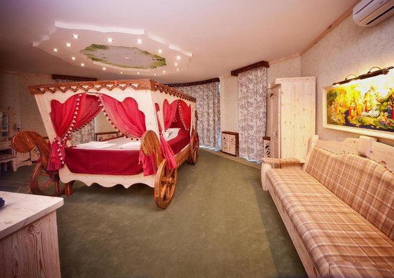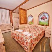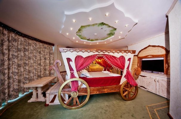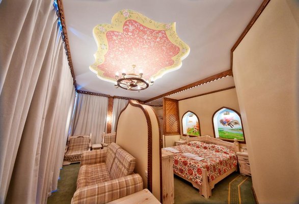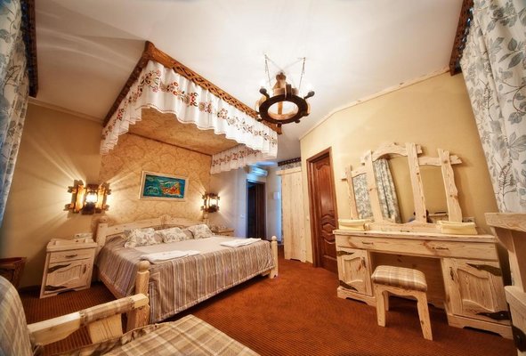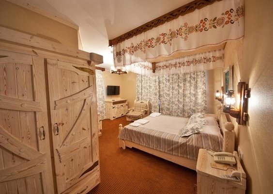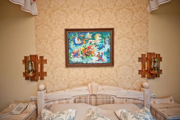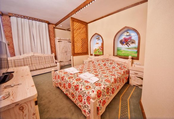 Интерьер номеров представлен в стиле русской народной сказки. Все категории оснащены современной мебелью и техникой, а так же беспроводным интернетом и кабельным телевидением.