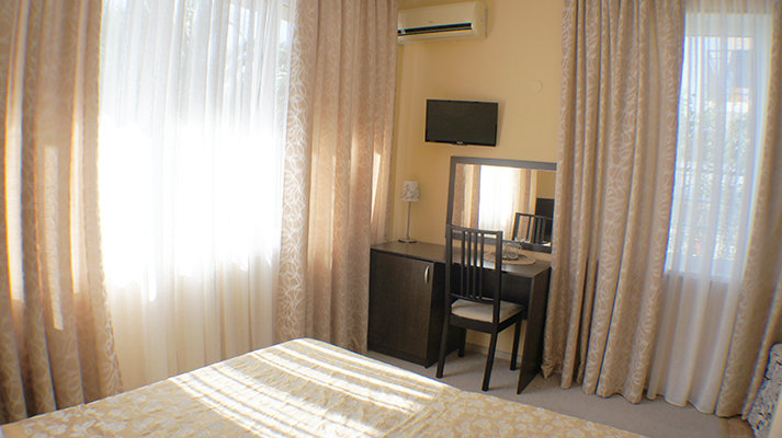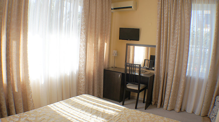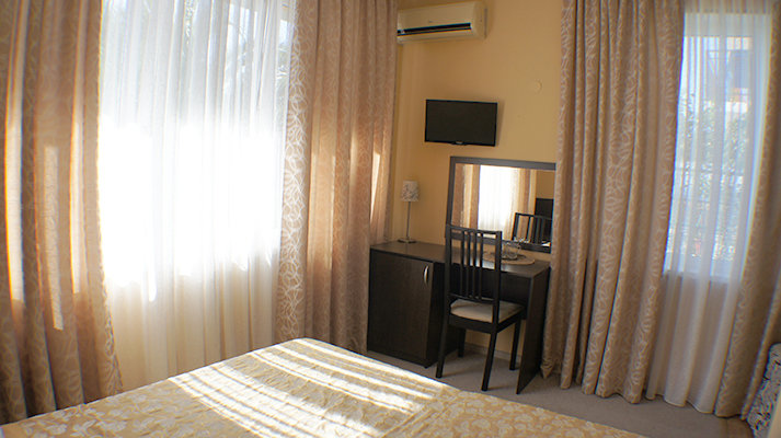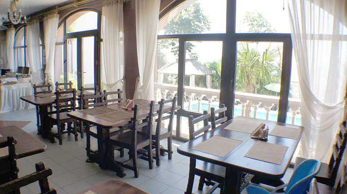 Питание постояльцев по системе «шведский стол» осуществляется три раза в день в кафе отеля. При желании, можно выбрать для этого подходящую столовую или кафе по соседству.