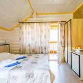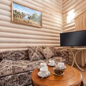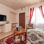 Отель предлагает комфортное проживание в деревянных эко-коттеджах с разнообразными категориями номеров.