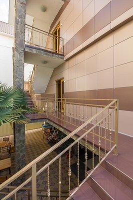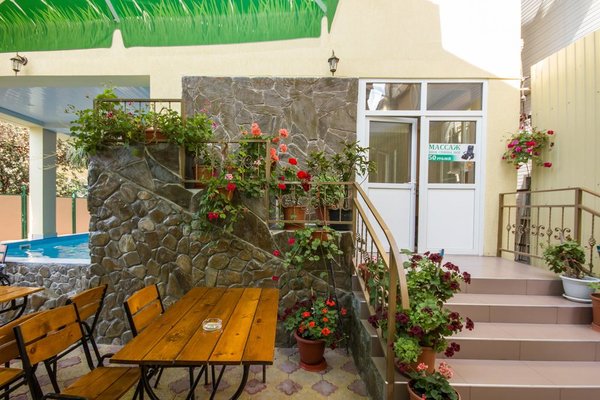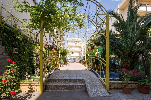 Отель расположен на берегу Черного моря в 50 метрах от городского обустроенного пляжа. Неподалеку от гостиницы находятся продуктовые магазины и сувенирные павильоны. А в 10 минутах ходьбы от отеля находится Центр Развлечений «Курортный городок», в нем представлены детские аттракционы, самый большой в России Океанариум, Дельфинарий, Аква-парк «Амфибиус», Террариум, Луна-парк, тренажерные залы, теннисные корты, кафе-бары и рестораны с традиционной и зарубежной кухней.