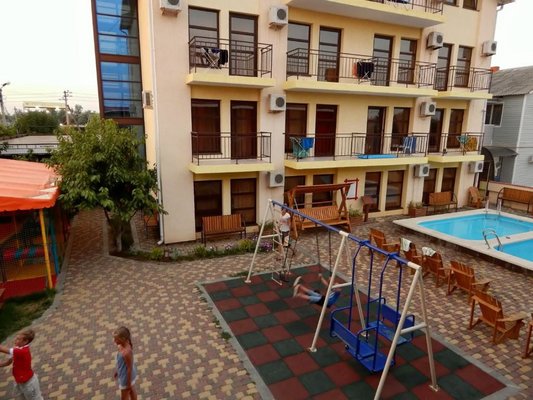 Хорошее место положение, пляж рядом, напротив дельфинарий и аттракционы, закрытая территория-дети могут свободно играть во дворе.