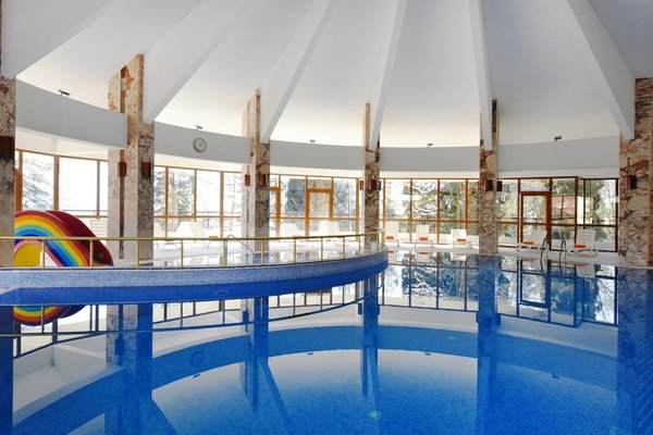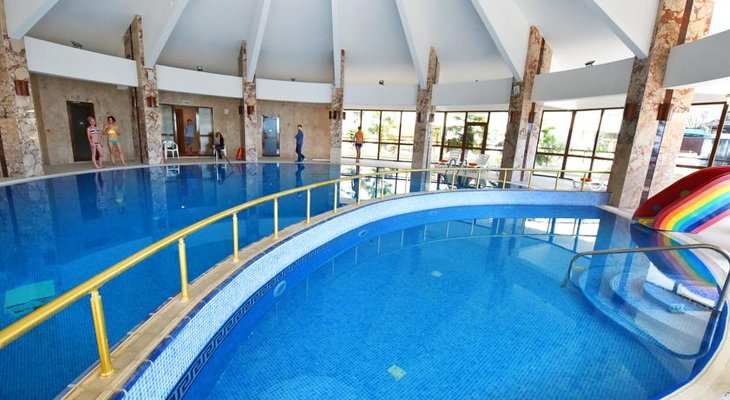 Расположен внутри главного корпуса. Температура воды 28 — 30 градусов, что идеально подходит для расслабления, бодрящих водных развлечений и тренировок.