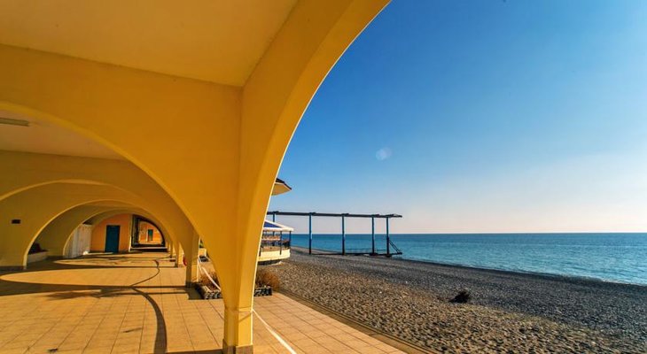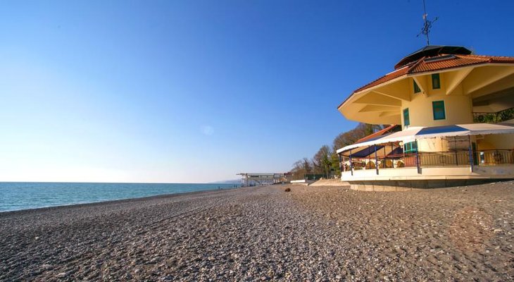 На территории комплекса есть уютный галечный пляж, всего в 500 метрах от отеля. Здесь гости могут насладиться отдыхом, пользуясь шезлонгами, зонтами, душем, раздевалками и теневыми навесами.