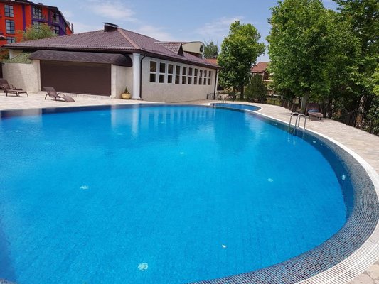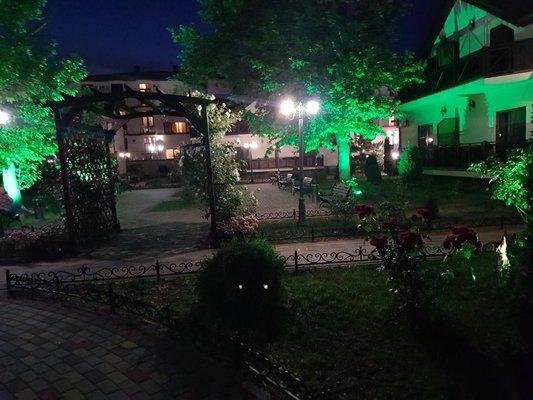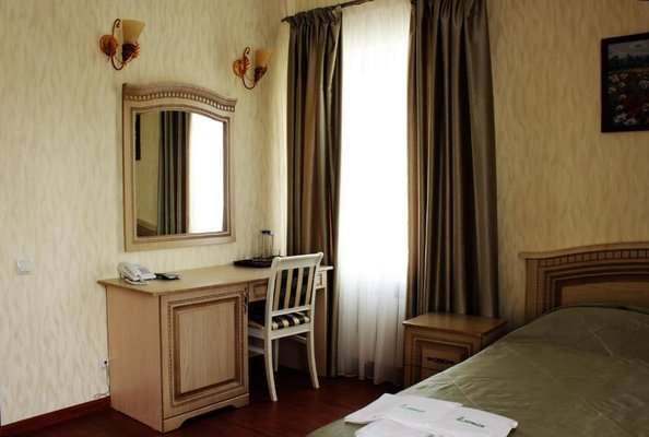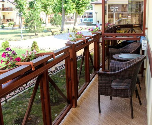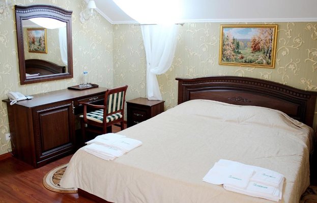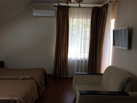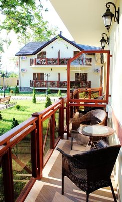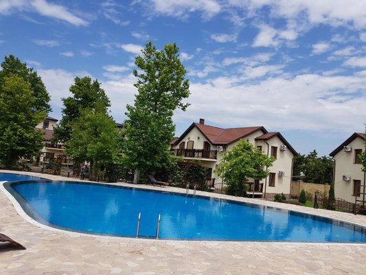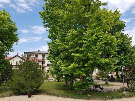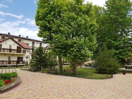 Территория пансионата составляет 7000 кв.м. и находится среди зеленой парковой зоны. Пансионат включает в себя 7 двухэтажных корпусов и может единовременно принять более 100 отдыхающих. Гостей ждут комфортабельные номера "Стандарт", "Люкс" и "Студио" с классическим интерьером, санузлом с душем, сплит-системой, меблированным балконом, телевизором и холодильником.