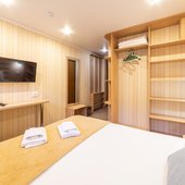 Приятные оттенки отделки номеров подарят Вам прекрасную атмосферу для отдыха. В каждом виде размещения имеется всё, чтобы Ваше проживание было комфортным и принесло лишь положительные эмоции и желание вернуться в эти края.