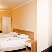 Номерной фонд представлен номерами разных категорий, они вмещают в себя от двух до трех человек и укомплектованы всем необходимым: