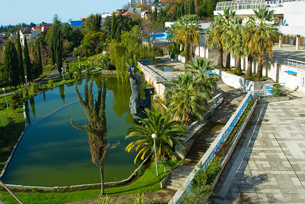 от железнодорожного вокзала г. Сочи, далее на маршрутном такси № 17, 7, 77, 4, 6 до остановки «Нева» или на такси.