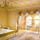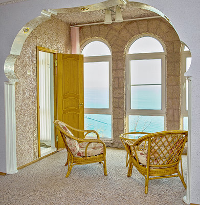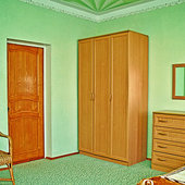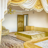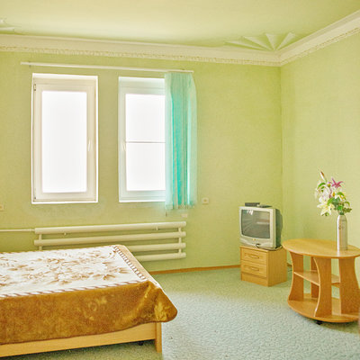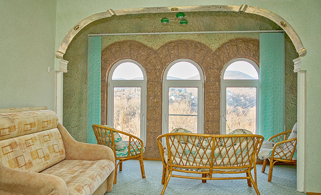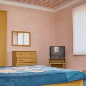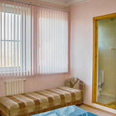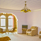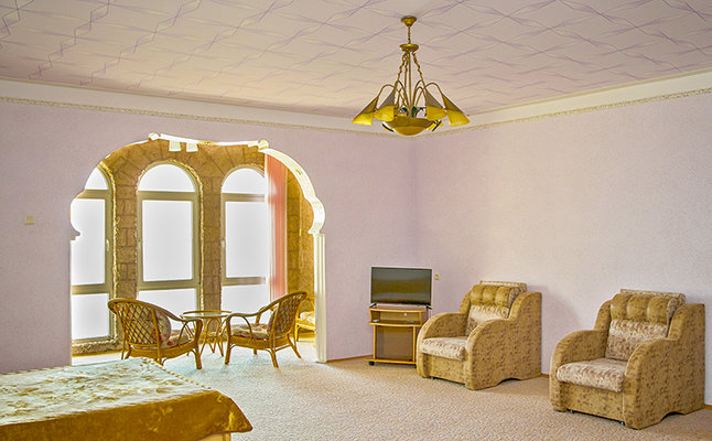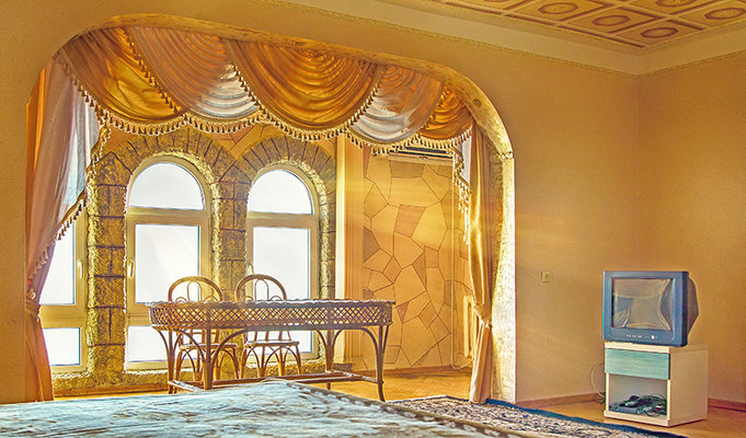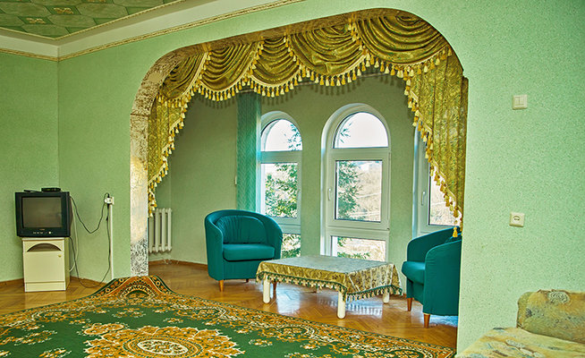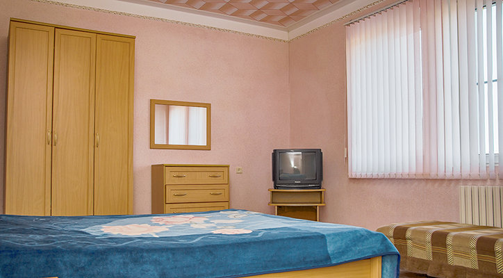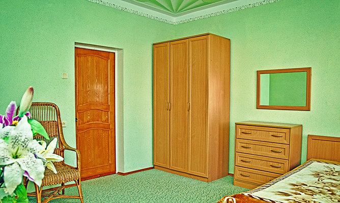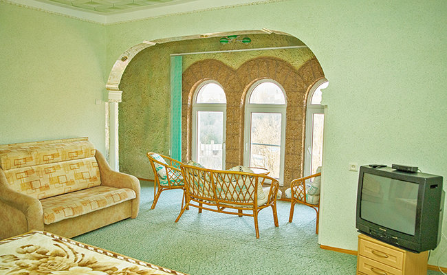 Четырехэтажный корпус вмещает номерной фонд и подземный паркинг. Апартаменты гости могут арендовать любые, которые им подходят по личным предпочтениям. Стандарты отлично укомплектованы меблировкой и техникой, но санузел расположен на этаже. Полулюксы имеют площадь от 15 до 30 кв. м и оснащены новой мебелью, бытовыми приборами и прочими нужными элементами. А шикарные люксы делают отдых четырёх гостей полноценным и непринужденным.