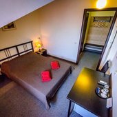 К бронированию доступно 2, 3, 4-х местное и более размещение в номерах, с видом на море, на полуостров, во внутренний двор, на улицу. Все номера категории «Стандарт». Есть возможность выбрать размещение с односпальными кроватями, двуспальными, а также есть двухъярусные кровати. В некоторых комнатах возможна постановка дополнительной кровати (например детской или раскладной). Завтрак входит в стоимость отдыха. В уютном внутреннем дворике располагается кафе где сервируются обеды и ужины для желающих.