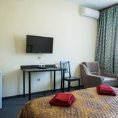 На сегодняшний день номерной фонд составляет 146 номеров (в том числе, с видом на море и полуостров) расположенных на трех этажах. Оснащение комнат 2-х корпусов: сплит-система, телевизор, холодильник, санузел.