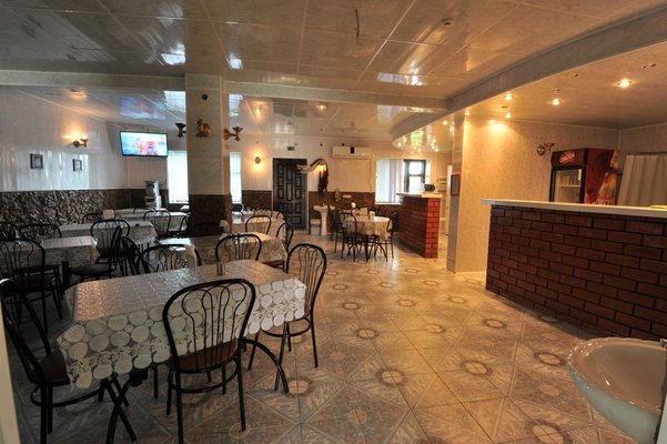 На территории гостиницы есть кафе с домашней кухней, здесь можно заказать комплексное питание, а также можно приобрести напитки, кофе или мороженное. В здании есть общая кухня.