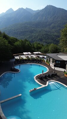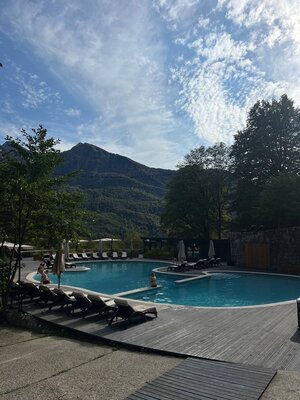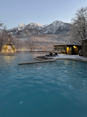К услугам гостей панорамная сауна с потрясающим видом на горы. Снаружи — открытая веранда с теплым открытым бассейном и джакузи.