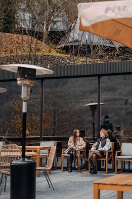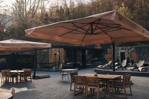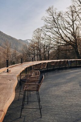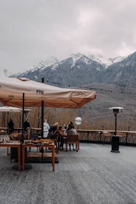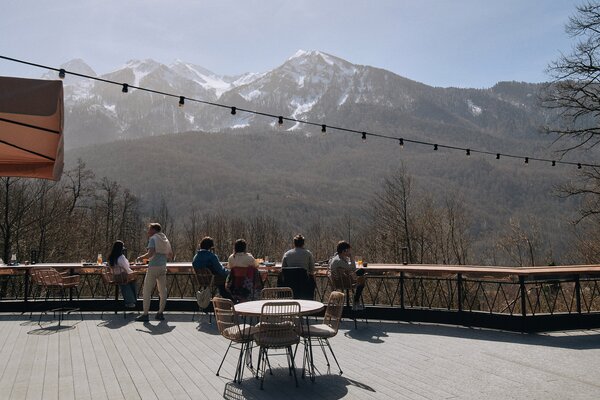 Место с захватывающим видом на горный хребет Аибга и авторским меню, где переплетается европейская кухня и блюда с кавказским акцентом, а фирменные напитки дарят прохладу в жару и согревают прохладными вечерами.