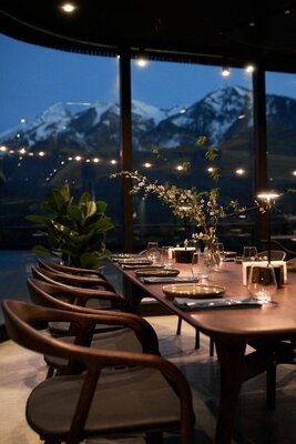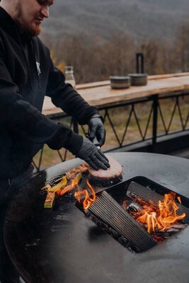 Кухня сочетает в себе тонкие мотивы локальных блюд и европейской классики. Делается акцент на сезонность, чтобы радовать гостей необычными вкусовыми сочетаниями. При создании блюд шеф-повар использует местные фермерские продукты, в том числе горные травы Кавказа.