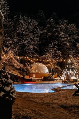 В сердце живописной Красной Поляны, среди горных вершин, расположился глэмпинг «Pine River». Погрузитесь в единение с природой, насладитесь красотой окружающих ландшафтов и зарядитесь энергией, забыв о городской суете. Вас ждут уникальные номера «НеоТипи» со стеклянными стенами и панорамным 360-градусным видом на горы. К вашим услугам: бассейн с шезлонгами, массажный кабинет, панорамная сауна, уютная зона отдыха и ресторан. Отдых в «Pine River» прекрасен в любое время года.
