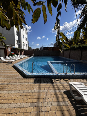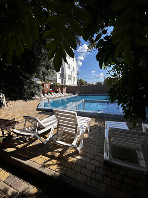 На территории пансионата работает столовая, где можно приобрести полноценное питание. К услугам гостей — сезонный открытый бассейн с неглубокой детской зоной и зонами для отдыха, а также детская площадка с горками во дворе. Прямо напротив отеля находится собственный песчаный пляж, оборудованный лежаками, зонтиками, навесами и кабинками для переодевания.