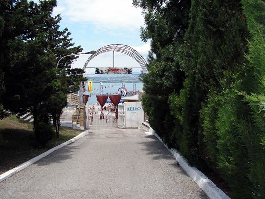 Пансионат также располагает собственным благоустроенным мелко-галечным пляжем, расположенным в 50-ти метрах от главного корпуса. На территорию пляжа, согласно Федеральному закону, вход свободный.