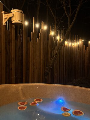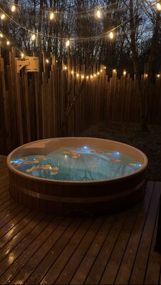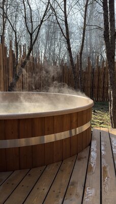 Горячая расслабляющая купель. Одной топки хватит на 4-6 часов (в зависимости от времени года).
