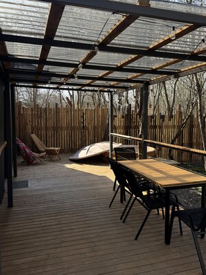 Можно приезжать с небольшими и воспитанными собачками не более 40 см в холке, весом до 10 кг. Правила: Депозит 5000 ₽ (возвращается после выезда, если домик в порядке). Просьба протирать лапки питомца перед входом в домик. Не оставляйте, пожалуйста, питомца одного надолго. Убирайте за своим другом на территории.