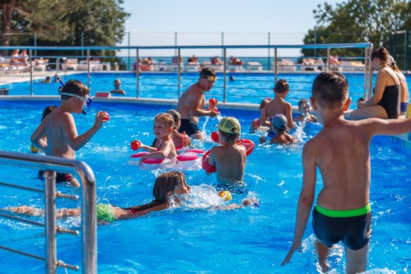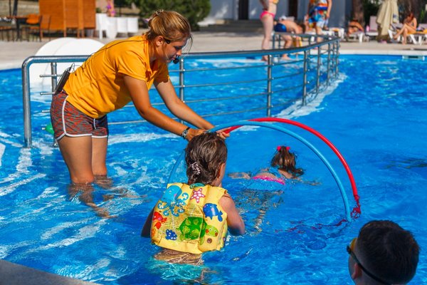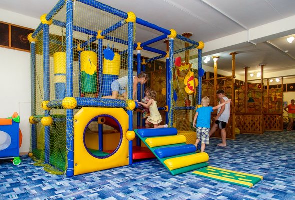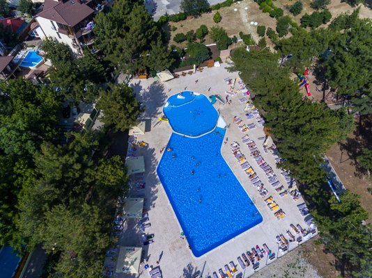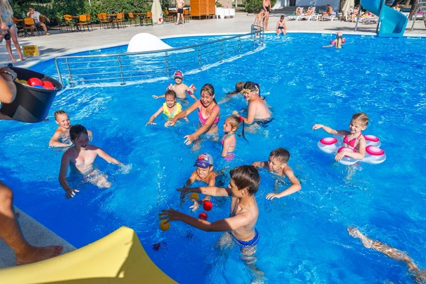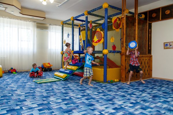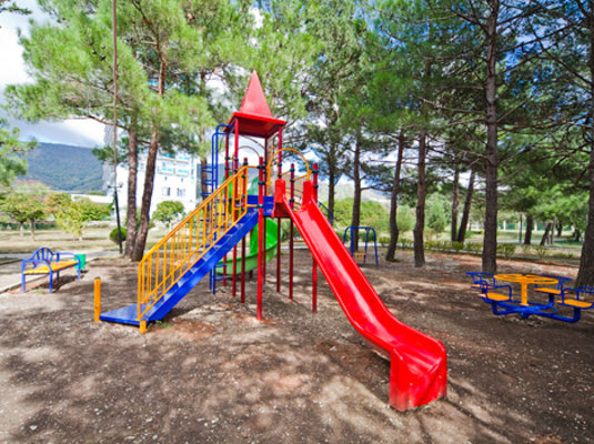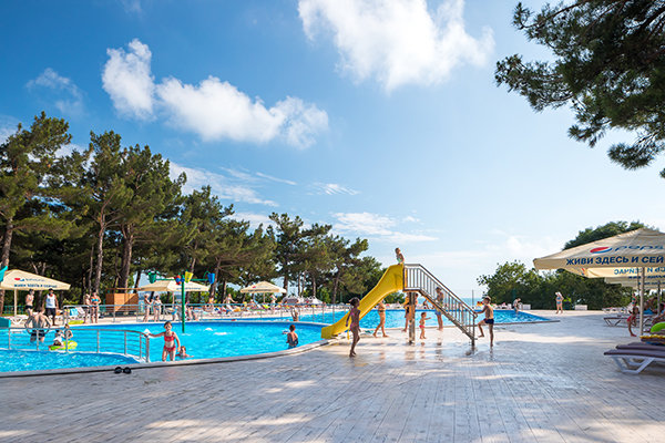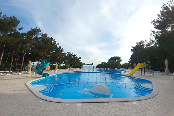 Пансионат располагает специально оборудованной детской зоной в основном бассейне, предназначенной для самых маленьких гостей. Этот участок имеет безопасную неглубокую глубину и оснащен горкой, адаптированной под рост и потребности малышей. Кроме того, в чаше бассейна установлено подводное освещение, создающее приятную и безопасную атмосферу для купания.