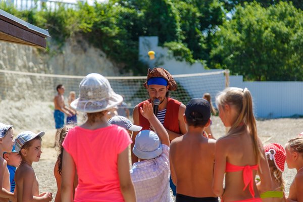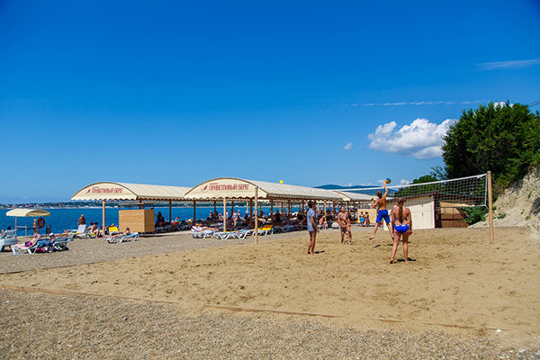 «Приветливый берег» — идеальное место для семейного отдыха. Для детей работают опытные аниматоры, оборудованы игровая комната и детская площадка. Взрослые могут заняться спортом на открытых площадках и тренажерах, отдохнуть в баре, отправиться на экскурсии или почитать книгу в библиотеке. К услугам гостей также открытый бассейн с подсветкой и детскими зонами (0,4 м и 0,7 м глубиной). Просторный пляж станет любимым местом отдыха для всей семьи.