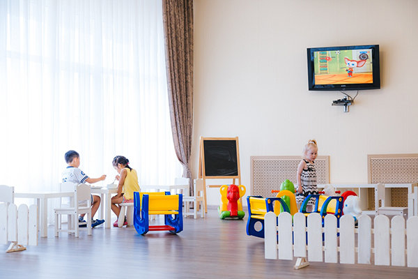 Дети принимаются с 1 года. При размещении на основном месте предоставляются скидки детям до 13 лет. В пансионате «Приветливый берег» работает детская игровая комната «Непоседы»: С детьми рисуют, лепят из пластилина, читают, играют в подвижные интересные игры, которые развивают фантазию. А вечером ваши дети могут блеснуть своими талантами и потанцевать на мини-дискотеке; Пребывание детей в игровой комнате входит в стоимость путевки; Игровая комната работает ежедневно с 9.00 до 20.00; Возраст принимаемых детей: от 1 года до 12 лет; От 1 года до 4 лет дети принимаются с родителями; В ресторане пансионата предусмотрена специальная детская зона, где показывают мультики; В ресторане имеются специальные высокие детские стульчики для кормления детей;В номерах для малышей предоставляются детские кроватки.
