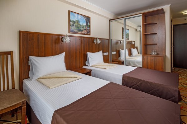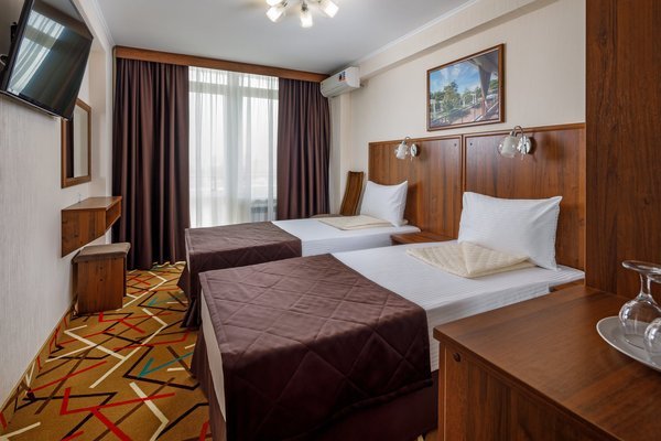 Из окон каждого номера (Стандарт 2-местный, Семейный 2-местный 2-комнатный и Семейный Комфортный 2-местный 2-комнатный) открывается захватывающий вид на море и горы. Гостям предлагается 5-разовое питание по системе «Шведский стол» с разнообразным меню.