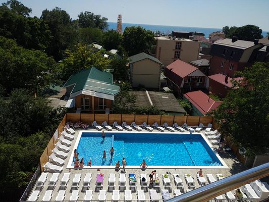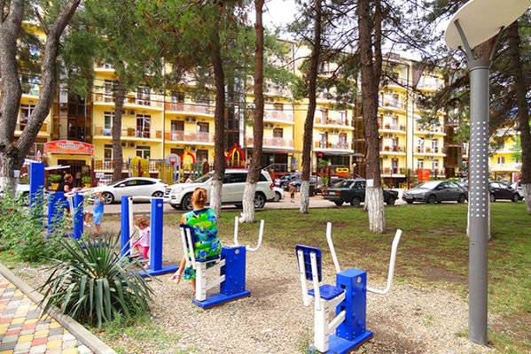Рядом с отелем растут великолепные могучие сосны, наполняющие воздух своим ароматом. До моря всего 3-5 минут ходьбы. Смесь морского и горного воздуха благоприятно скажутся на здоровье гостей и будут приятным дополнением к отдыху. Рядом магазины, аптека, рынок, масса развлечений и аттракционов.