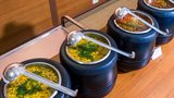 - Подойдите к «шведскому столу» и внимательно ознакомьтесь с предлагаемым ассортиментом блюд. Это позволит выбрать еду по вкусу и правильно рассчитать собственные силы;