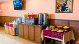 Ассорти из свежих овощей. Сырное и мясное ассорти. Салаты из овощей. Молочные каши, каши на воде. Омлет, яйца вареные. Сырники, запеканки. Блинчики, вареники. Тефтели, фрикадельки, сосиски. Гарниры. Мюсли. Молоко, сливки, йогурт, творог. Кофе, какао, соки, минеральная вода. Чаи: черные, зеленые, фруктовые. Джемы, сметана, сгущенное молоко, мед. Сливочное масло. Фрукты свежие. Кондитерские изделия, булочки.