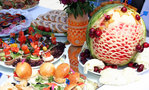 Ассорти из свежих овощей. Сырное и мясное ассорти. Соленья: огурцы, помидоры, капуста, морковь, грибы. Горошек и кукуруза. Маслины, оливки. Салаты (до 5 видов):мясные, овощные, рыбные. Горячие блюда из рыбы, мяса, курицы (до 5 видов). Гарниры: овощи, крупы, макаронные изделия, картофель, бобовые изделия. Соусы. Соки, морсы, компоты. Кофе, какао, минеральная вода. Чаи: черные, зеленые, фруктовые. Фрукты свежие. Кондитерские изделия, булочки.