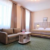 До 4 лет ребенок без места и питания может размещаться с родителями бесплатно. Детская кроватка по запросу. Внимание! Бесплатно размещается только один ребенок до 4-х лет.