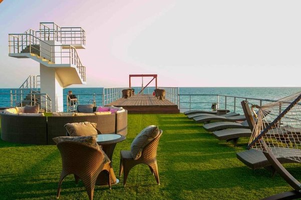 комплекс бассейнов — 5 бассейнов: аквапарк (1500 кв.м), бассейн с пресной водой, подогреваемый бассейн с пресной водой, подогреваемый детский бассейн, морской бассейн.