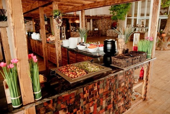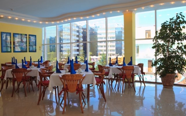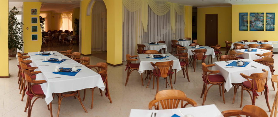 Основной ресторан — «Таверна», в 5 этажном отдельно стоящем корпусе, круглосуточно с 8 до 23.00 система «все включено» далее ресторан работает по счету, ресторан для номеров Повышенной комфортности «Галилео» в 5 этажном отдельно стоящем корпусе, круглосуточно с 8 до 23.00