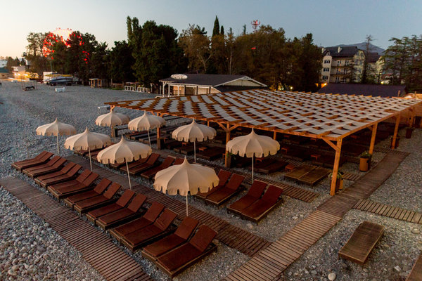 - от ж/д вокзала: на любом транспорте в сторону Сочи до остановки «Центр», далее пешком 10 мин. в сторону моря