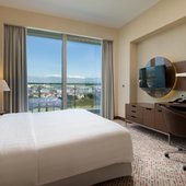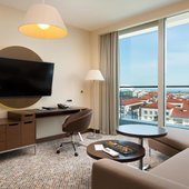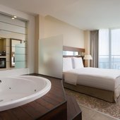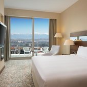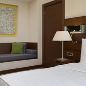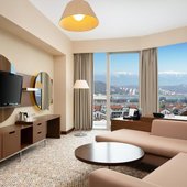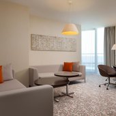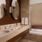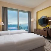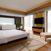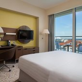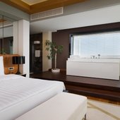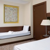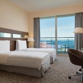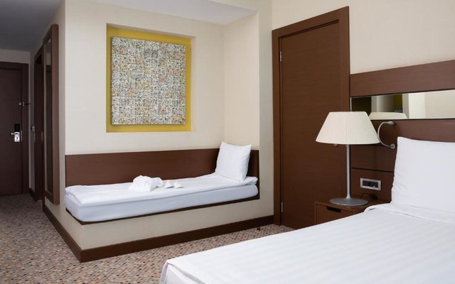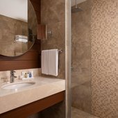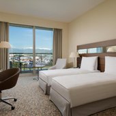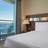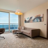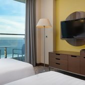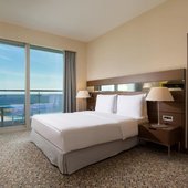 Современные номера оформлены в коричнево-бежевых тонах и оснащены кондиционером. В числе удобств каждого комфортабельного номера телевизор с плоским экраном, мини-бар и собственная ванная комната с банными халатами, тапочками, феном и фирменными туалетно-косметическими принадлежностями. С балкона открывается вид на Черное море или горы.