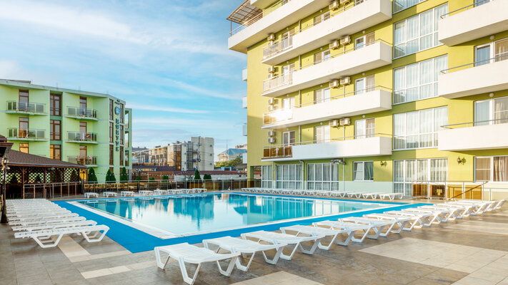 В основном корпусе 76 номеров, во втором корпусе (Кактус) 29 номеров различных категорий. Размещение гостей в комфортабельных и уютных номерах. В каждом номере: холодильник, телевизор, система кондиционирования воздуха (сплит-система), ванная комната (душ, туалет,