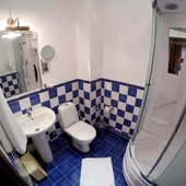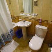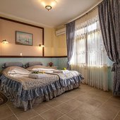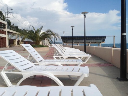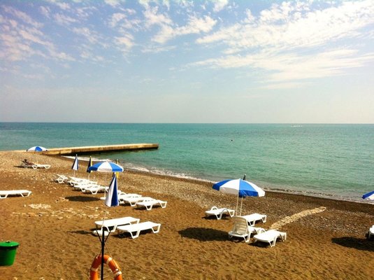 Расположение, конечно, оставляет желать лучшего: до различных магазинов, развлекательных центров, кафе ехать далеко, идти тем более, так как они в центре все. Попался номер люкс, однако вид его не открывался на море, что было очень печально. Найти пансионат трудно, указателей нет. Помогла лишь дача Сталина, она поблизости.
