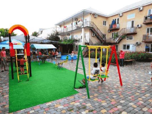 Для отдыхающих функционируют сезонный пресноводный бассейн площадью в 32 кв.м. и надувной детский бассейн. Есть и детская игровая площадка на свежем воздухе.