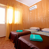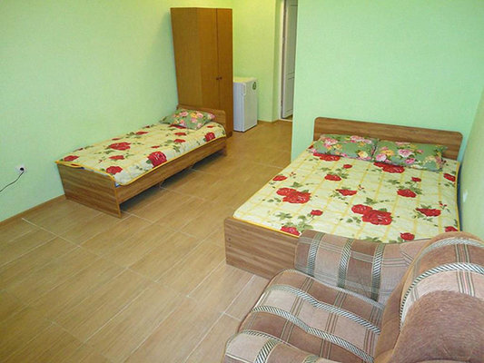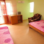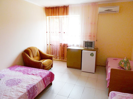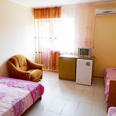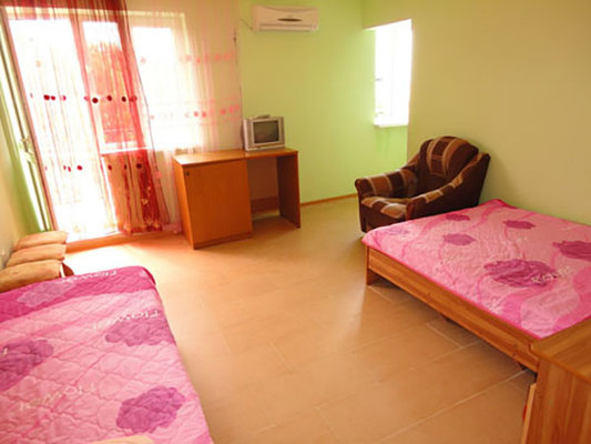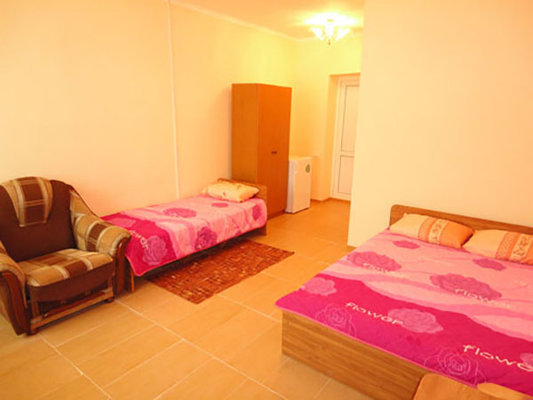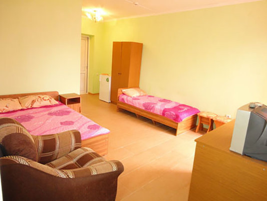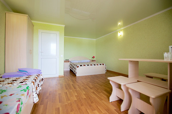 На огороженной, недоступной для посторонних территории гостевого дома, ухоженной и озелененной, находится пять жилых корпусов, насчитывающих 73 номера категории «стандарт» с разным количеством мест и комнат. Все номера гостевого дома обеспечены отдельным санузлом с душем и туалетными принадлежностями. В каждом из них есть необходимая бытовая техника.
