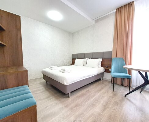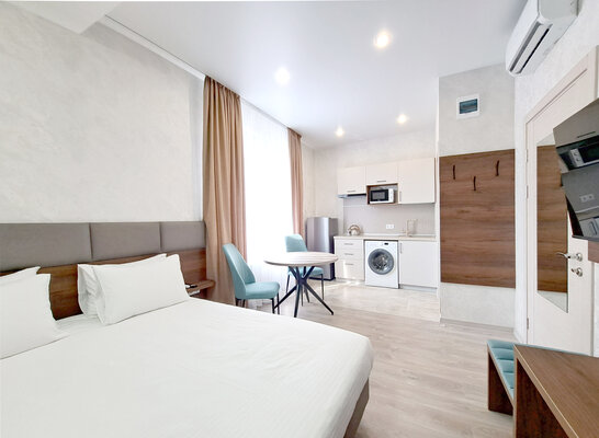 В тихом и уютном районе Сочи, всего в 700 метрах от пляжа Мамайка, расположен апарт-отель «Булгаков by Sateen Group». В непосредственной близости находится санаторий «Октябрьский», предлагающий широкий спектр медицинских услуг. Разнообразие кафе и супермаркетов позволит вам насладиться изысканными блюдами или приготовить любимые завтраки, обеды и ужины самостоятельно. Удобное расположение отеля обеспечивает легкий доступ к железнодорожной станции (1 километр) и аэропорту (43 километра).