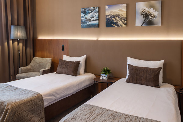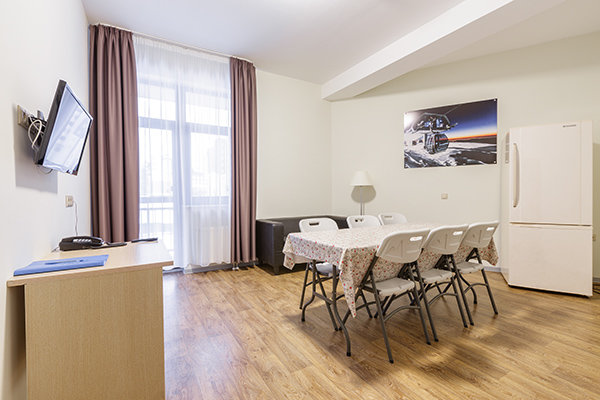 Отель состоит из 5 корпусов в шаговой доступности от канатных дорог и склонов курорта, а главный корпус предлагает гостям оценить преимущества системы ski-in/ski-out, когда вся горнолыжная инфраструктура находится в 10 метрах от отеля. Номерной фонд из 364 номеров предлагает гостям более 10 вариантов размещения на любой случай: эконом номера с общим санузлом, уютные апартаменты с полностью оборудованной кухней, номера с несколькими спальнями для больших семей и компаний, а так же новый клубный этаж с улучшенными номерами делюкс.
