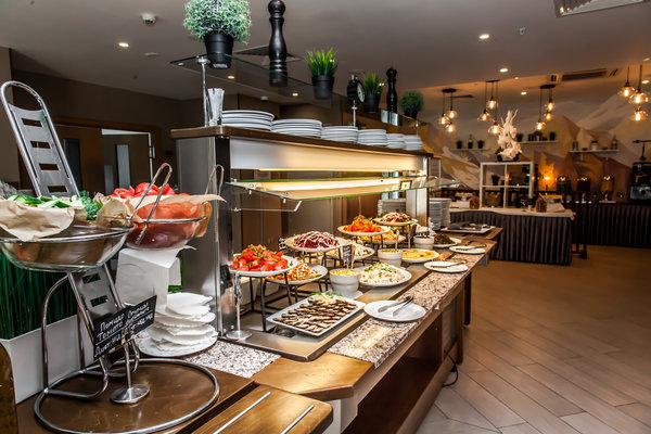 Основной ресторан — Эдельвейс, 3 этаж; шведский стол; время работы: с 07-00 до 20-00